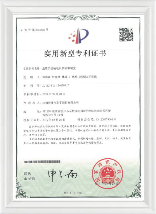 Utility Model Certificate para sa Pag -mount Device na angkop para sa pagtitipon ng mga motor